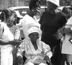 Across North Street from the church, in an open lot, a small crowd began forming at the beginning of the service, but expanded significantly as more and more soldiers in ceremonial dress began to arrive. Initially, most of those observing from there were vendors, hawking cold water, sodas, cigarettes and snacks, but eventually, the gathering grew, mostly made up of residents of the nearby communities who had come to watch the pomp and pageantry.