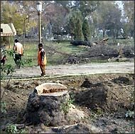 Возможно, что офицер и сам об этом еще не знал. Между тем, когда человека в погонах, на лице которого отражалась сложная гамма чувств смеси раздражения, напряженности и готовности дать отпор - спросили, зачем же рубить здоровые многолетние деревья, он заучено ответил, что «лишние деревья спилят, а вместо них для красоты посадят елки, укрыв поверхность земли новым газоном». Затем он недвусмысленно попросил нас удалиться.